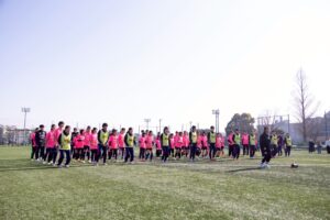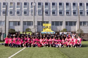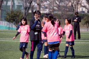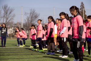 先日、朝霞キャンパスサッカー場にて、第3回SHIMANOWAラピスプロジェクトを共催しました。伊豆諸島でサッカーをしている女の子たちと、近隣地域のサッカーをしている女の子たち43名に参加していただきました。