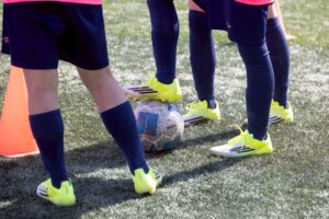 まず、ゲストのあこさんにリズムトレーニングをしていただき、その後、学年でグループ分けをし、部員が考えた、パス・ドリブル・リフティング・シュートのメニューでサッカー教室をした後、子どもたちに混ざってミニゲームなどを行いました。