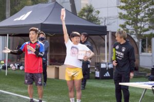 また、本サッカー教室を盛り上げようと吉本興業所属のイージー蓮見さん、マリンボブさんにもお越しいただきました。